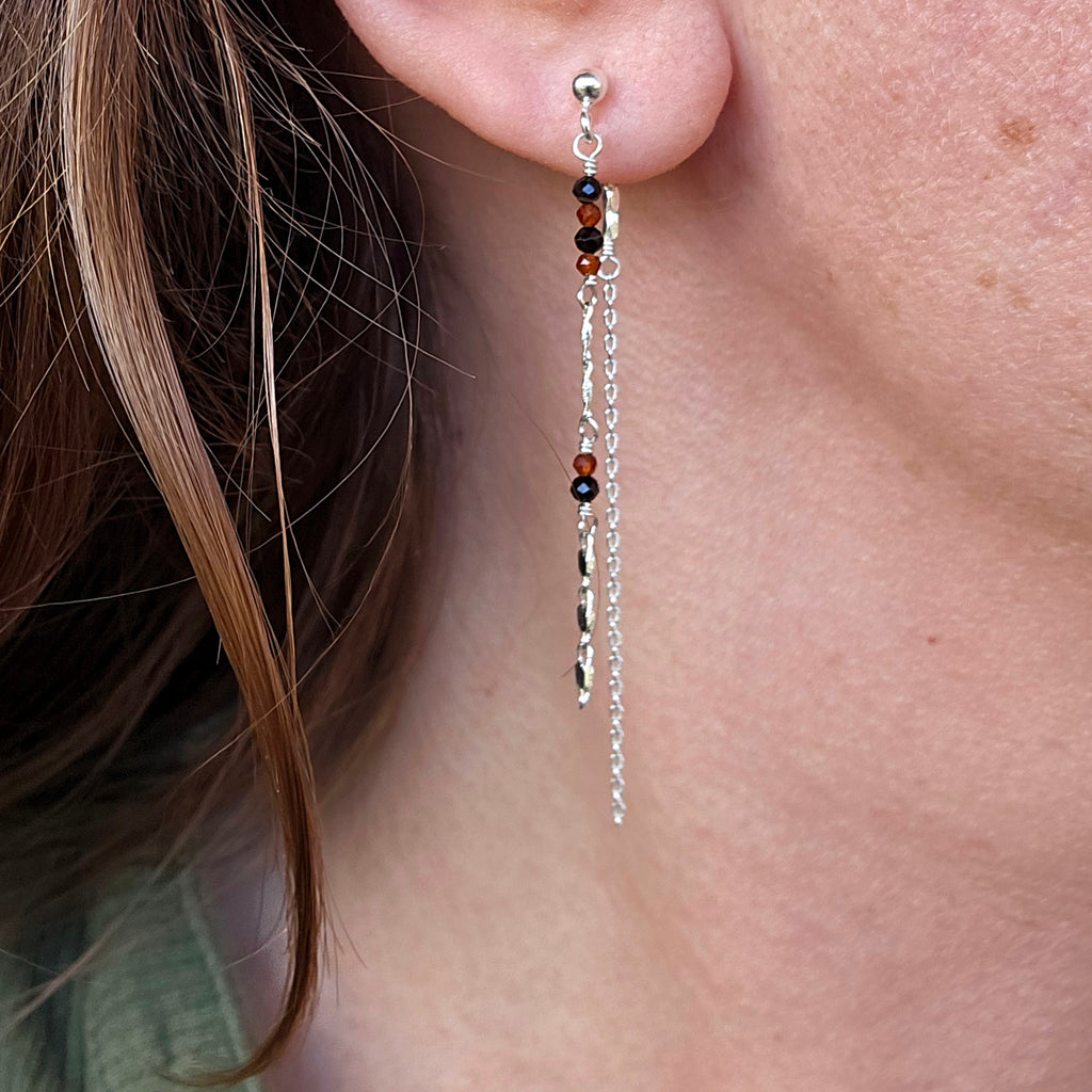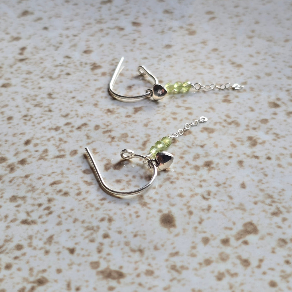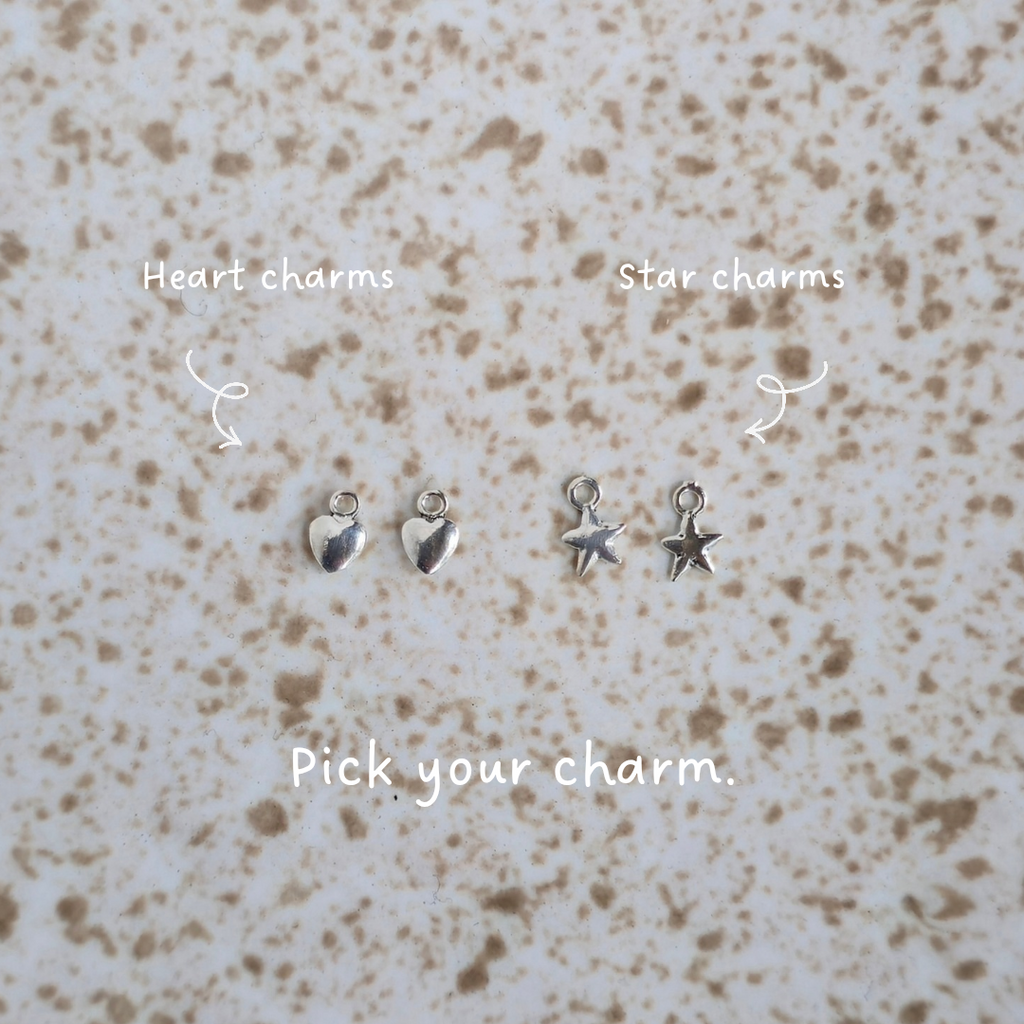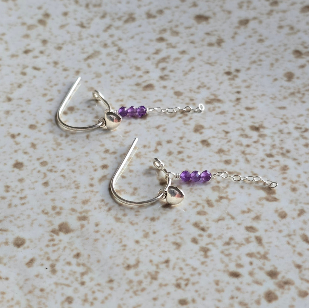 The perfect everyday hoop. Handmade with beautiful natural garnet and your choice of tiny silver hearts or stars.