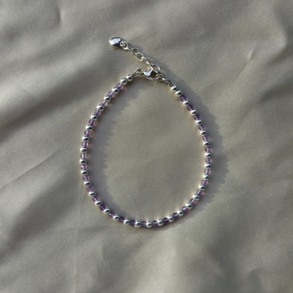 This delicate bracelet is a beautiful blend of sterling silver and natural amethyst. It's lightweight, elegant and full of charm.