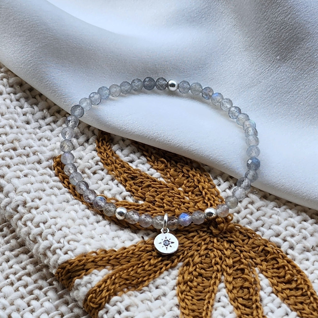 Comprised of natural faceted labradorite, sterling silver and a beautiful rhodium star charm (representing the discovery of your own north star aka your "inner wisdom")