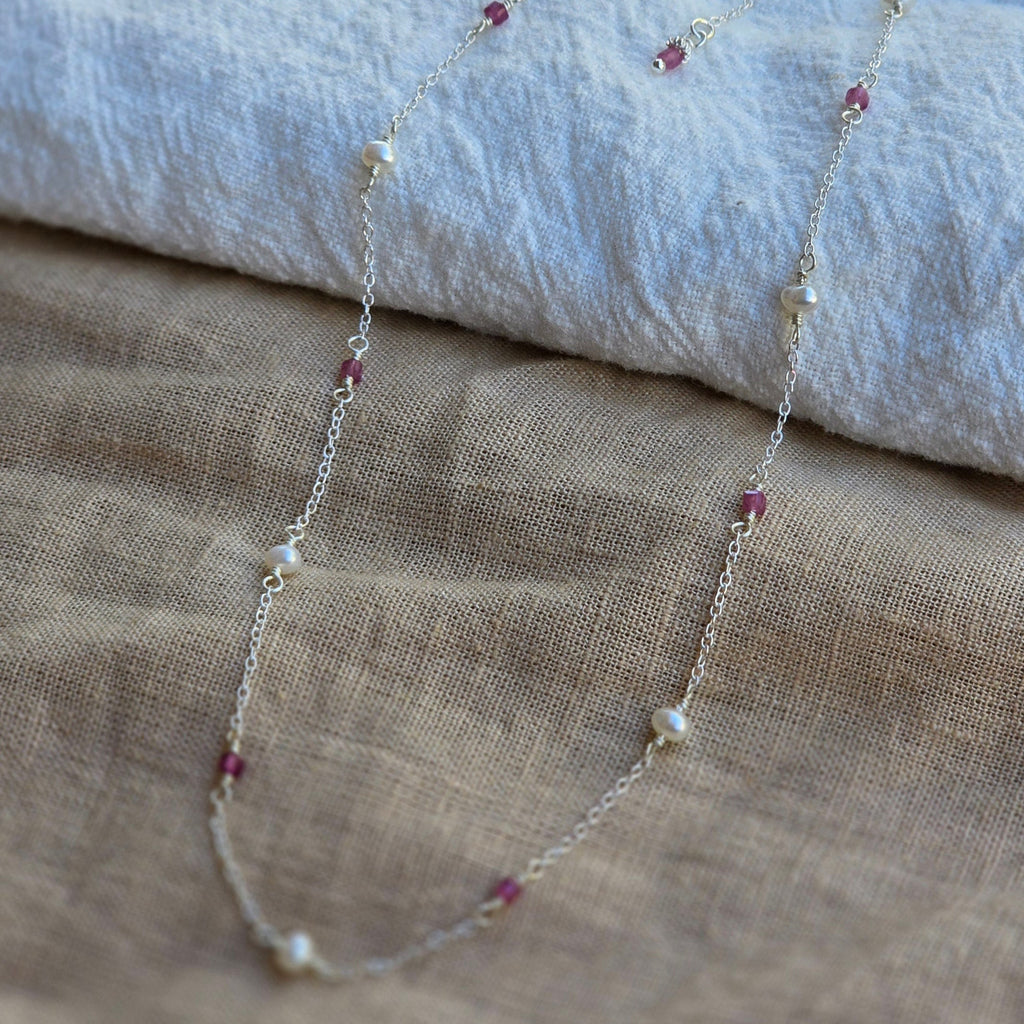 Rosie Necklace | Pink Tourmaline + Pearl | Silver