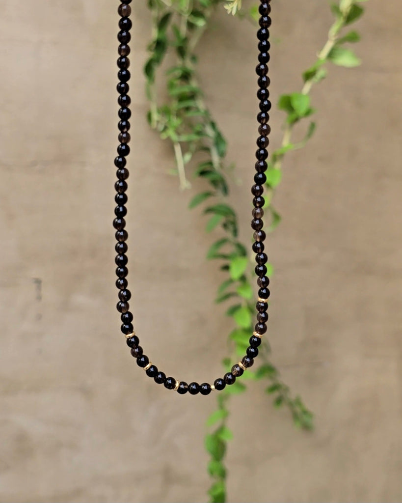 Connect with your inner empress and nourish your mind, body, and soul with this stunning handmade talisman. Made with stunning smoky quartz and touches of gold, you can wear this versatile necklace with the toggle clasp in the front or back.